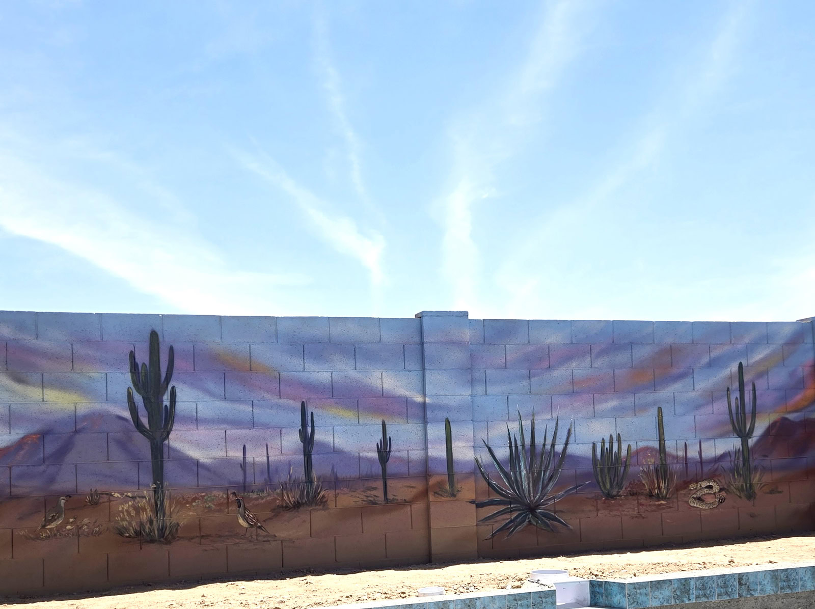 He realizado cientos de murales de gran formato. Con fuerte énfasis en el paisaje y la representación del entorno natural. Tras más de catorce años residiendo en Arizona, el paisaje desértico se ha convertido en algo natural para mí, una fuente constante de inspiración por su belleza única.